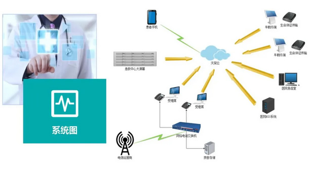 天荣120智能急救系统,院前院内一体化的智能120系统 ,打通院前院内数据,生命体征自动采集+自动伤情评估 全程监控+远程指导,提高院前急救能力,减轻医护工作强度!