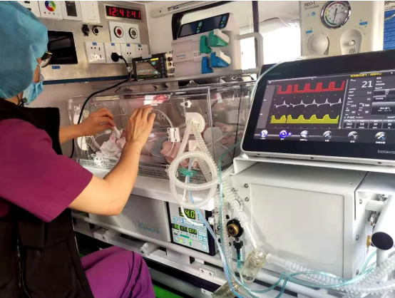 新生儿监护有多么重要呢?让我们跟着监护仪厂家天荣医疗一起看看吧!去年11月12日上午,天津妇产医院新生儿科接到某医院产科请求支援电话,科主任立即派出有经验的医护团队迅速出发,启用5G新生儿救护转运车及时赶到出生医院帮助施救。 产妇分娩一对双胞胎姐妹,“姐姐”出生体重940克,“妹妹”出生体重930克。因早产、呼吸窘迫等原因需到新生儿重症监护室(NICU)进行进一步诊治。复苏成功并在病情稳定后,医护人员用这辆“移动NICU”将“小宝宝”们平安转入天津妇产科医院新生儿科进一步诊治。